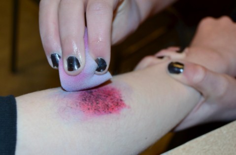 Theaterkracht is ingehuurd voor het geven van workshops Grimeren om hun presentatie over slavernij compleet te maken. Ze kozen voor het maken van schaafplekken, wonden en blauwe plekken en haalden zelfs de plaatselijke krant.
